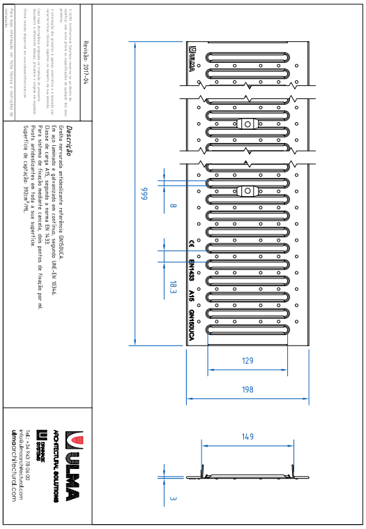 Grelha Nervada GN150UCA (Self200) da marca ULMA é um componente de drenagem robusto e eficaz, projetado para suportar cargas leves em áreas de tráfego restrito.