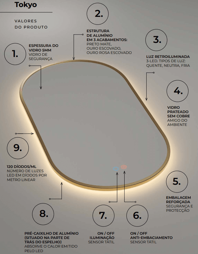 Espelho Tokyo Elíptico Retroiluminado Ledimex
