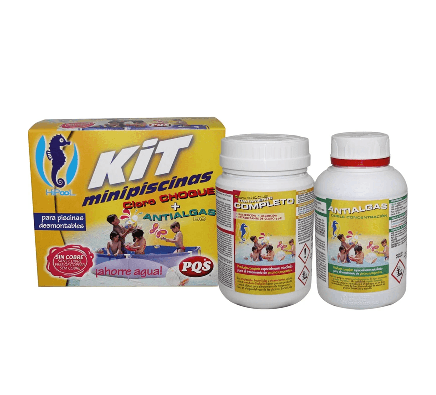 Mantenha a sua piscina sempre limpa, segura e cristalina com o Kit Mini Piscinas Hipool PQS, desenvolvido especialmente para quem possui piscinas de pequena dimensão. Este kit essencial combina cloro granulado (500 g) e um eficaz anti algas líquido (500 ml), garantindo uma água higienizada e livre de micro-organismos.